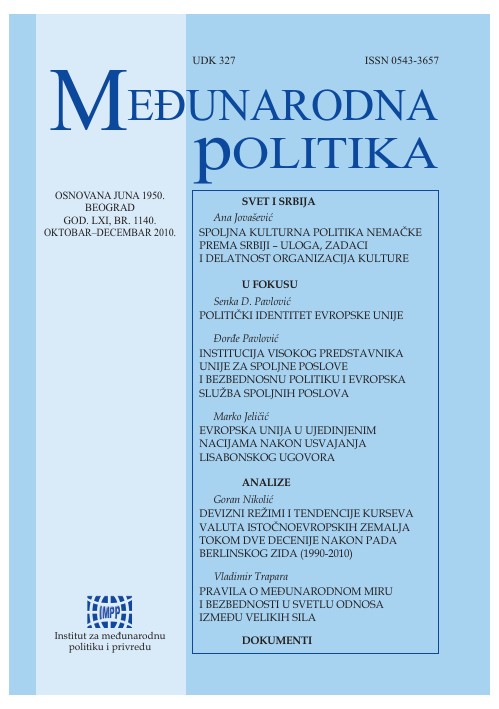 Stupanjem na snagu Lisabonskog ugovora Evropska unija je doživela značajne reforme u oblasti spoljne politike. U nameri da novoformirane institucije, pre svega Visokog predstavnika za spoljnu i bezbednosnu politiku i predsednika Evropskog saveta, iskoristi za unapređenje multilateralnog aspekta svog međunarodnog delovanja, Evropska unija je tokom 2010. godine preduzela inicijativu s namerom da ojača status posmatrača u Ujedinjenim nacijama i stekne dodatna prava u Generalnoj skupštini. U radu ću nastojati da utvrdim motive transformišućeg delovanja Evropske unije u svetskoj organizaciji, a posebnu pažnju posvetiću faktorima koji su, po mom uverenju, doprineli da politički uticaj bloka u Ujedinjenim nacijama danas bude izraženiji nego ikada.